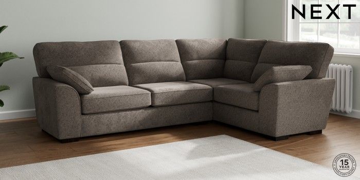 7.2.6 Buy Stamford Highback Large Corner Sofa - Right Hand Chunky Chenille Mink Brown Large Square Angle - Dark from the Next UK online shop Click here to use our accessible website