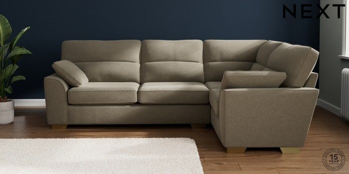 7.2.10 Buy Stamford Highback Large Corner Sofa - Right Hand Chunky Marl Light Olive Green Large Square Angle - Brushed Brass from the Next UK online shop Click here to use our accessible website