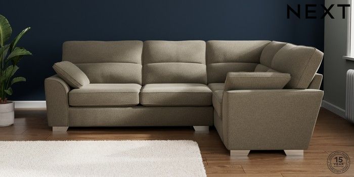 7.2.10 Buy Stamford Highback Large Corner Sofa - Right Hand Chunky Marl Light Olive Green Large Square Angle - Chrome Metal from the Next UK online shop Click here to use our accessible website
