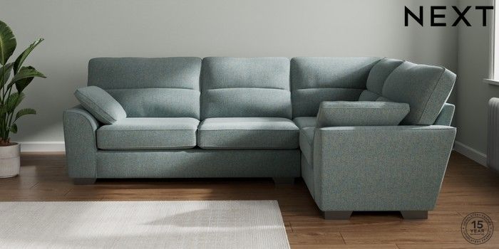 7.2.10 Buy Stamford Highback Large Corner Sofa - Right Hand Chunky Marl Mid Blue Large Square Angle - Gunmetal from the Next UK online shop Click here to use our accessible website