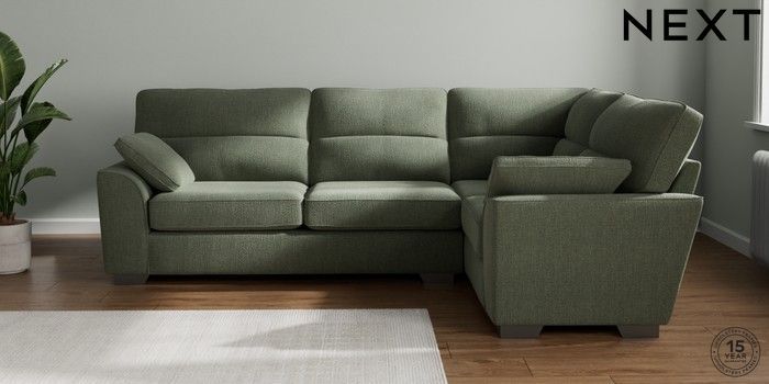 7.2.10 Buy Stamford Highback Large Corner Sofa - Right Hand Chunky Texture Mid Forest Green Large Square Angle - Gunmetal from the Next UK online shop Click here to use our accessible website