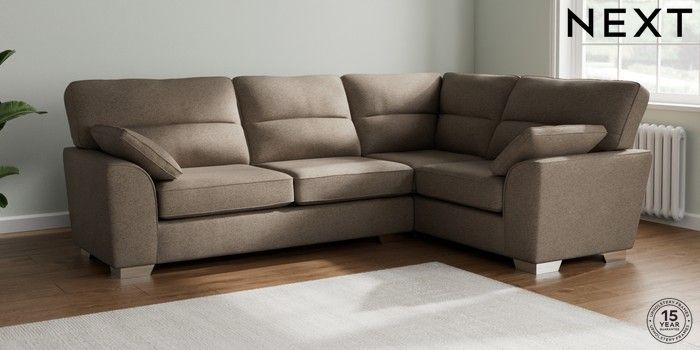 7.2.10 Buy Stamford Highback Large Corner Sofa - Right Hand Chunky Weave Dark Natural Large Square Angle - Chrome Metal from the Next UK online shop Click here to use our accessible website