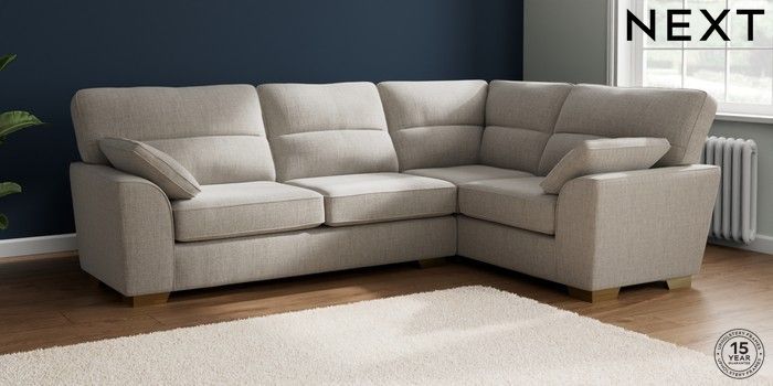 7.2.6 Buy Stamford Highback Large Corner Sofa - Right Hand Chunky Weave Dove Grey Large Square Angle - Brushed Brass from the Next UK online shop Click here to use our accessible website