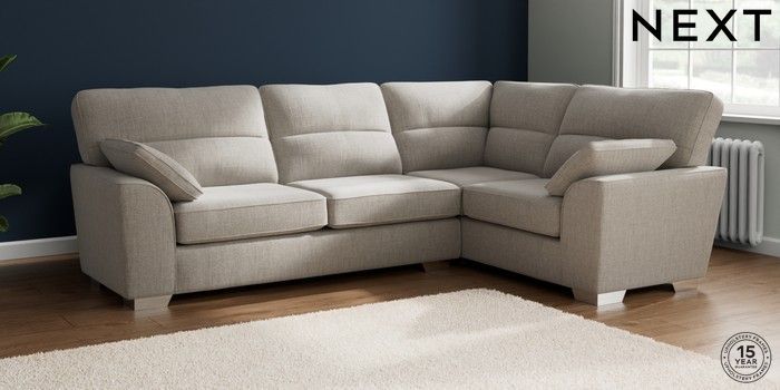 7.2.6 Buy Stamford Highback Large Corner Sofa - Right Hand Chunky Weave Dove Grey Large Square Angle - Chrome Metal from the Next UK online shop Click here to use our accessible website