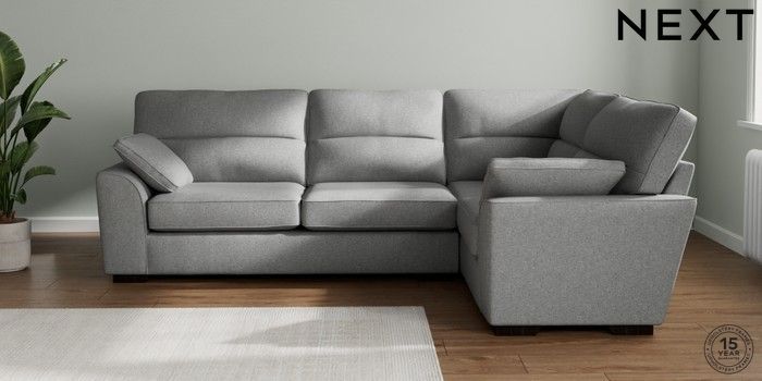 7.2.10 Buy Stamford Highback Large Corner Sofa - Right Hand Chunky Weave Mid Grey Large Square Angle - Dark from the Next UK online shop Click here to use our accessible website