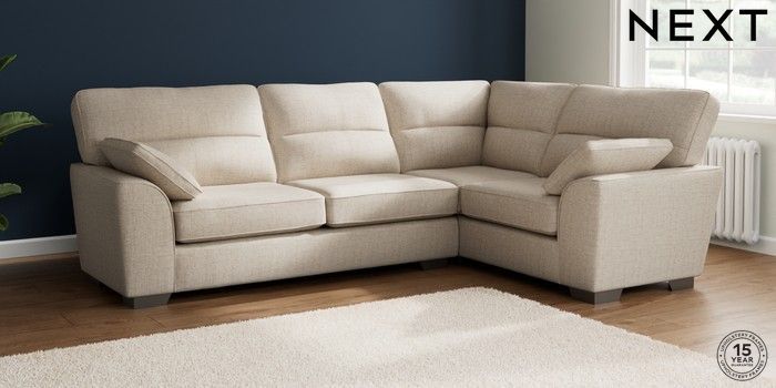7.2.10 Buy Stamford Highback Large Corner Sofa - Right Hand Chunky Weave Mid Natural Large Square Angle - Gunmetal from the Next UK online shop Click here to use our accessible website