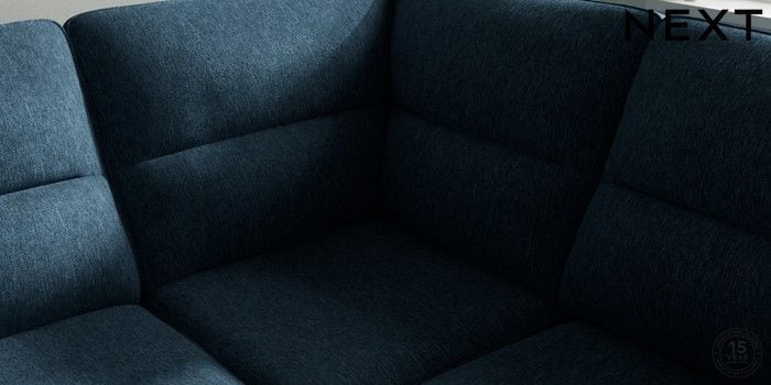 7.2.10 Buy Stamford Highback Large Corner Sofa - Right Hand Cotswold Chenille Dark Blue Large Square Angle - Brushed Brass from the Next UK online shop Click here to use our accessible website