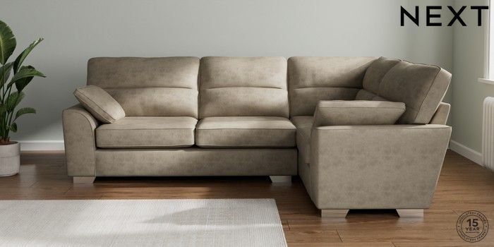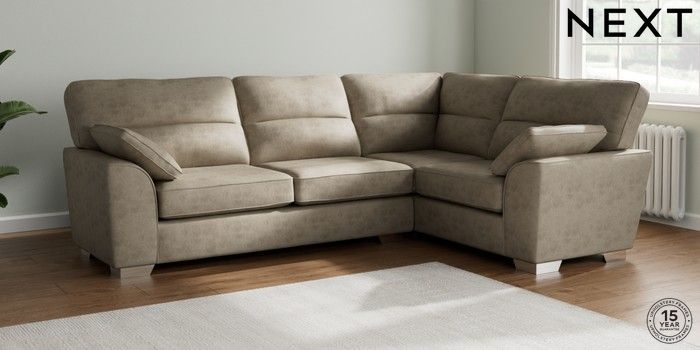 7.3.1 Buy Stamford Highback Large Corner Sofa - Right Hand Monza Faux Leather Easy Clean Mink Brown Large Square Angle - Chrome Metal from the Next UK online shop Click here to use our accessible website