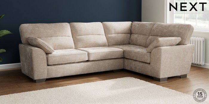 7.2.10 Buy Stamford Highback Large Corner Sofa - Right Hand Distressed Velour Mid Natural Large Square Angle - Gunmetal from the Next UK online shop Click here to use our accessible website