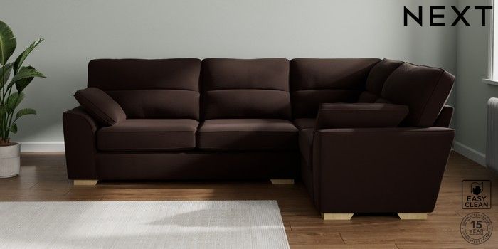 7.2.10 Buy Stamford Highback Large Corner Sofa - Right Hand Fine Chenille Easy Clean Chocolate Brown Large Square Angle - Light from the Next UK online shop Click here to use our accessible website