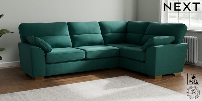 7.2.6 Buy Stamford Highback Large Corner Sofa - Right Hand Fine Chenille Easy Clean Dark Juniper Green Large Square Angle - Brushed Brass from the Next UK online shop Click here to use our accessible website