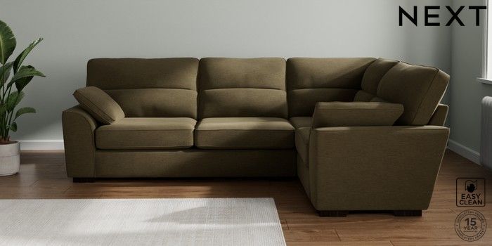 7.2.10 Buy Stamford Highback Large Corner Sofa - Right Hand Fine Chenille Easy Clean Dark Moss Green Large Square Angle - Dark from the Next UK online shop Click here to use our accessible website