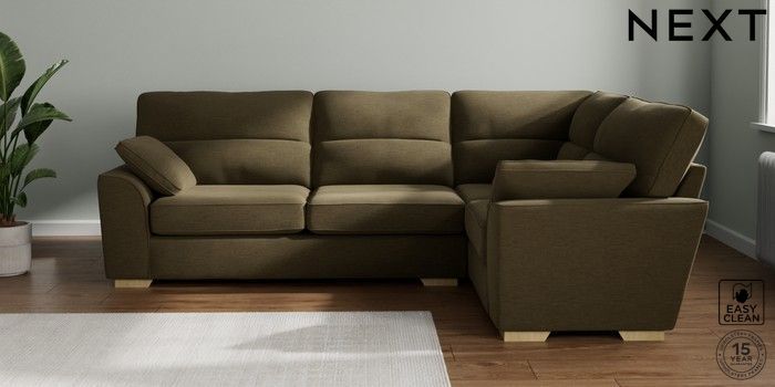 7.2.10 Buy Stamford Highback Large Corner Sofa - Right Hand Fine Chenille Easy Clean Dark Moss Green Large Square Angle - Light from the Next UK online shop Click here to use our accessible website