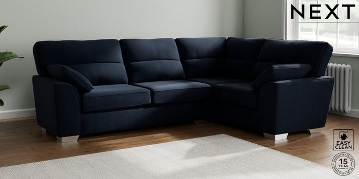 7.2.6 Buy Stamford Highback Large Corner Sofa - Right Hand Fine Chenille Easy Clean Dark Navy Blue Large Square Angle - Chrome Metal from the Next UK online shop Click here to use our accessible website