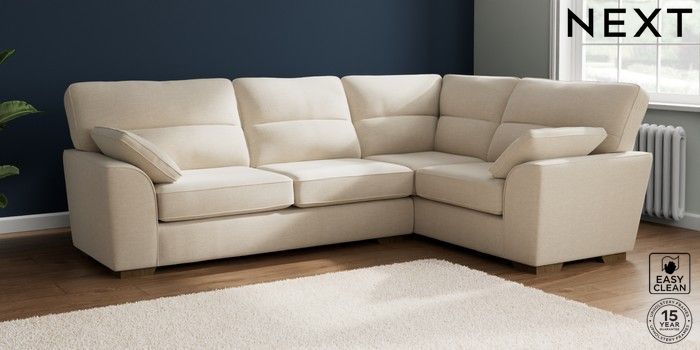 7.2.10 Buy Stamford Highback Large Corner Sofa - Right Hand Fine Chenille Easy Clean Oyster Large Square Angle - Mid from the Next UK online shop Click here to use our accessible website