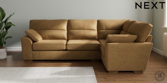 7.2.6 Buy Stamford Highback Large Corner Sofa - Right Hand Luxe Chenille Honey Yellow Large Square Angle - Mid from the Next UK online shop Click here to use our accessible website