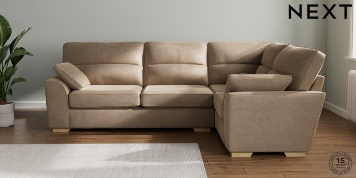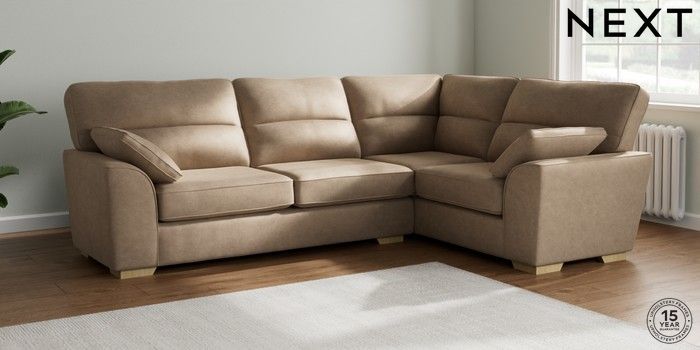 7.2.10 Buy Stamford Highback Large Corner Sofa - Right Hand Luxe Chenille Mid Camel Beige Large Square Angle - Light from the Next UK online shop Click here to use our accessible website