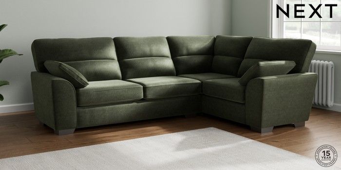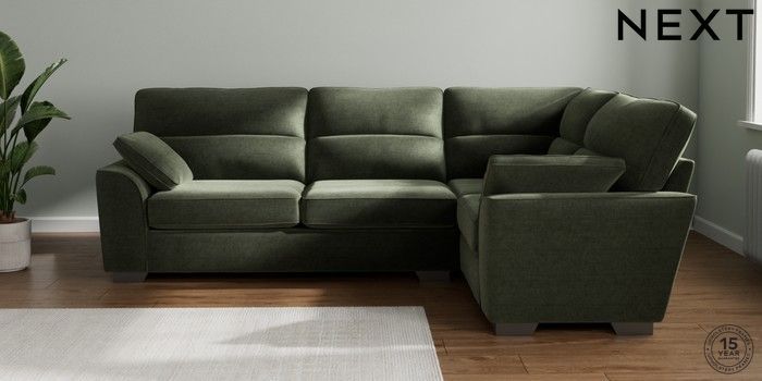 7.2.6 Buy Stamford Highback Large Corner Sofa - Right Hand Luxe Chenille Mid Green Large Square Angle - Gunmetal from the Next UK online shop Click here to use our accessible website