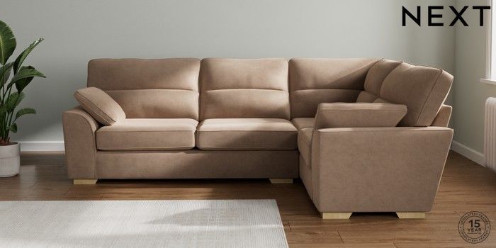 7.2.10 Buy Stamford Highback Large Corner Sofa - Right Hand Luxe Chenille Mid Natural Large Square Angle - Light from the Next UK online shop Click here to use our accessible website