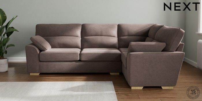 7.2.10 Buy Stamford Highback Large Corner Sofa - Right Hand Luxe Chenille Mink Brown Large Square Angle - Light from the Next UK online shop Click here to use our accessible website