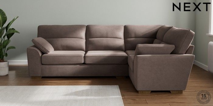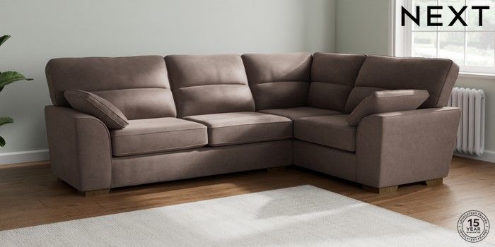 7.2.10 Buy Stamford Highback Large Corner Sofa - Right Hand Luxe Chenille Mink Brown Large Square Angle - Mid from the Next UK online shop Click here to use our accessible website