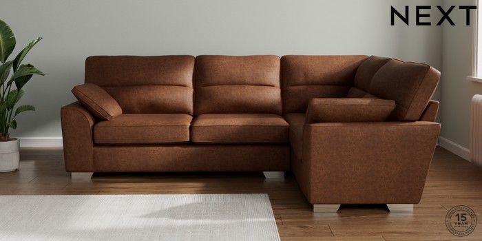 7.3.1 Buy Stamford Highback Large Corner Sofa - Right Hand Monza Faux Leather Easy Clean Chestnut Brown Large Square Angle - Chrome Metal from the Next UK online shop Click here to use our accessible website