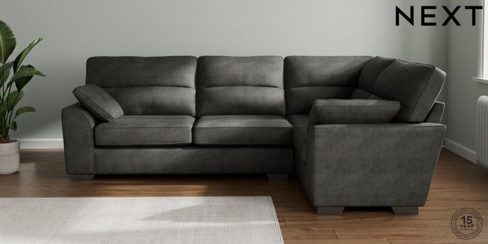 7.3.1 Buy Stamford Highback Large Corner Sofa - Right Hand Monza Faux Leather Easy Clean Dark Grey Large Square Angle - Gunmetal from the Next UK online shop Click here to use our accessible website