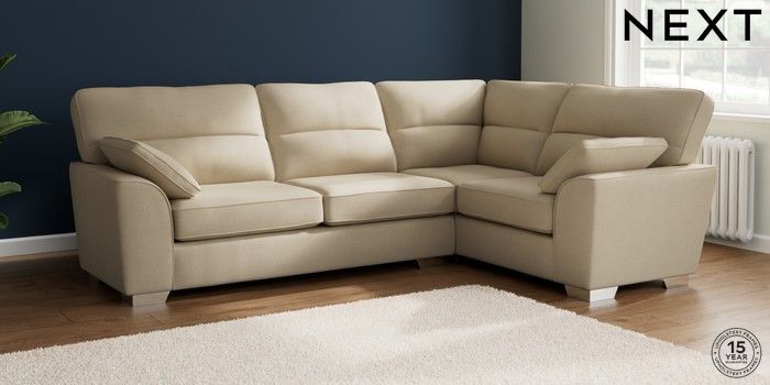 7.2.10 Buy Stamford Highback Large Corner Sofa - Right Hand Natural Mix Light Natural Large Square Angle - Chrome Metal from the Next UK online shop Click here to use our accessible website