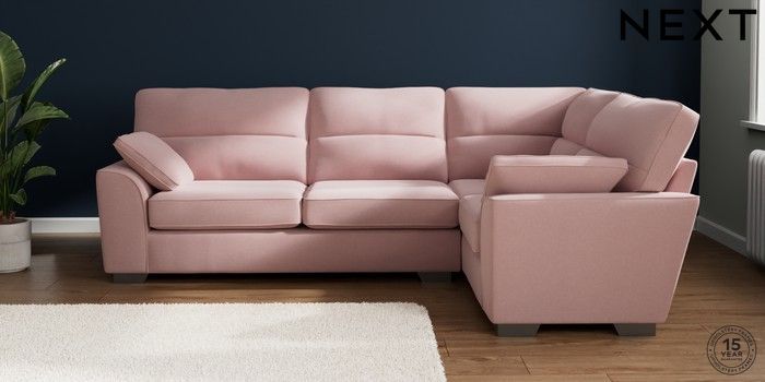 7.3.1 Buy Stamford Highback Large Corner Sofa - Right Hand Natural Mix Light Rose Pink Large Square Angle - Gunmetal from the Next UK online shop Click here to use our accessible website
