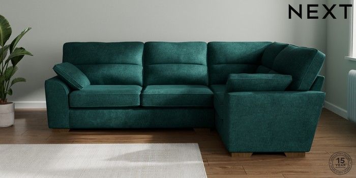 7.2.6 Buy Stamford Highback Large Corner Sofa - Right Hand Plush Chenille Dark Teal Green Large Square Angle - Mid from the Next UK online shop Click here to use our accessible website