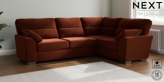 7.2.6 Buy Stamford Highback Large Corner Sofa - Right Hand Plush Velvet Easy Clean Ginger Orange Large Square Angle - Gunmetal from the Next UK online shop Click here to use our accessible website