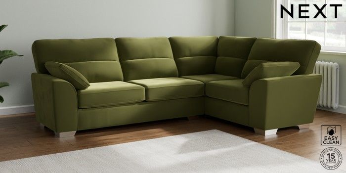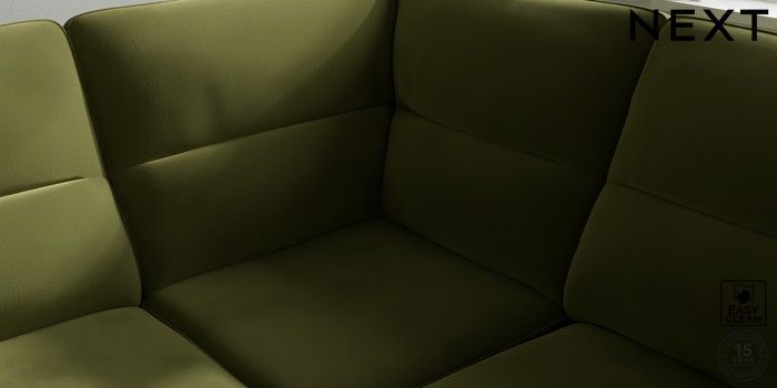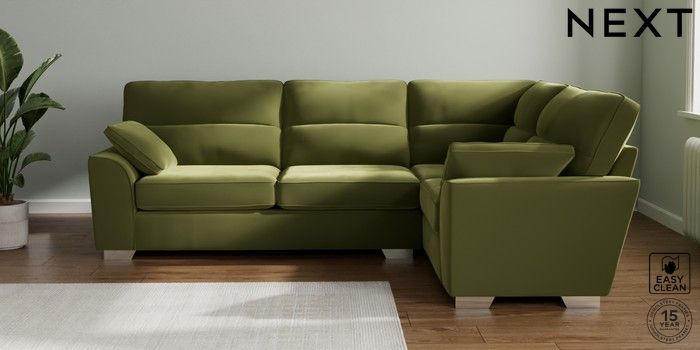 7.3.1 Buy Stamford Highback Large Corner Sofa - Right Hand Plush Velvet Easy Clean Mid Olive Green Large Square Angle - Chrome Metal from the Next UK online shop Click here to use our accessible website