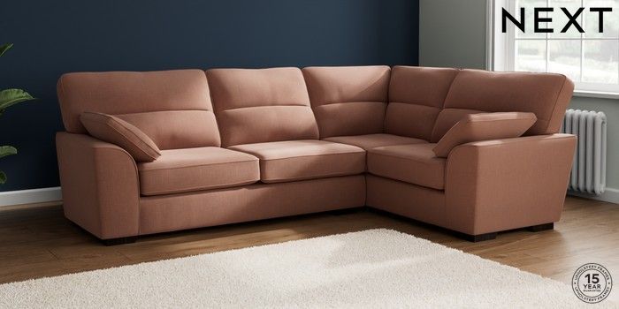 7.2.10 Buy Stamford Highback Large Corner Sofa - Right Hand Relaxed Linen Look Light Rust Brown Large Square Angle - Dark from the Next UK online shop Click here to use our accessible website