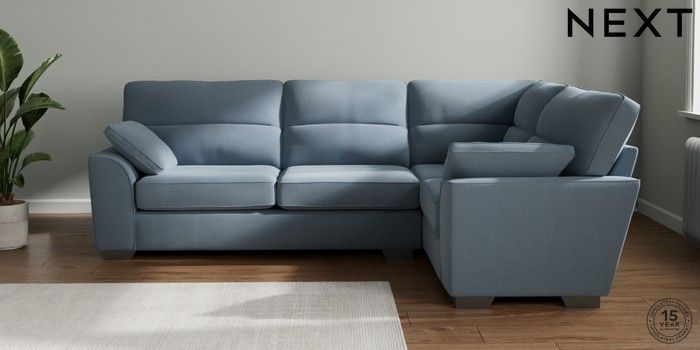 7.3.1 Buy Stamford Highback Large Corner Sofa - Right Hand Relaxed Linen Look Mid Blue Large Square Angle - Gunmetal from the Next UK online shop Click here to use our accessible website