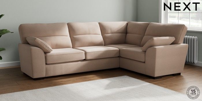 7.2.10 Buy Stamford Highback Large Corner Sofa - Right Hand Relaxed Linen Look Mid Natural Large Square Angle - Dark from the Next UK online shop Click here to use our accessible website