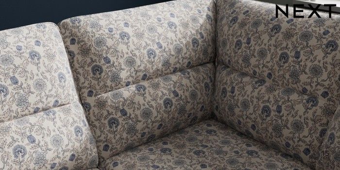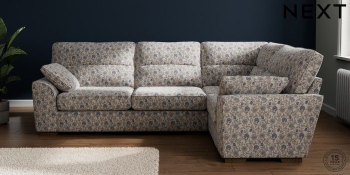 7.3.1 Buy Stamford Highback Large Corner Sofa - Right Hand Relaxed Linen Look Print Woodblock Floral Blue Large Square Angle - Mid from the Next UK online shop Click here to use our accessible website