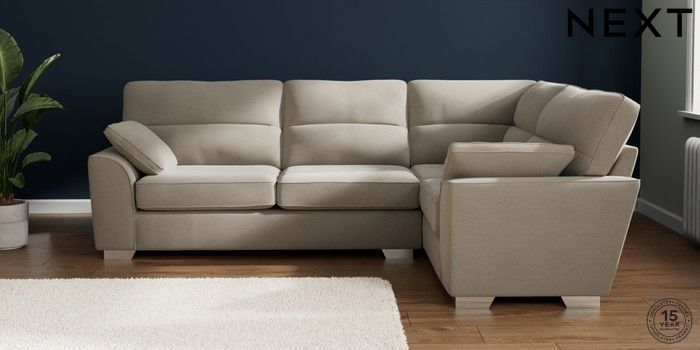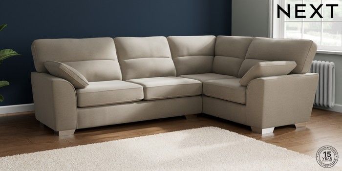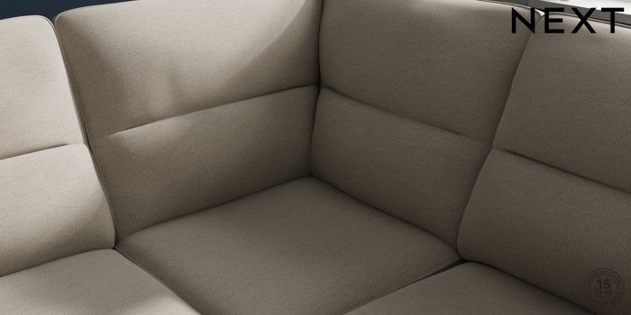 7.2.10 Buy Stamford Highback Large Corner Sofa - Right Hand Ripple Chenille Light Natural Large Square Angle - Chrome Metal from the Next UK online shop Click here to use our accessible website