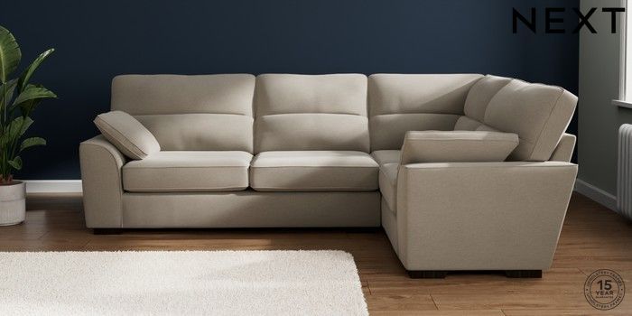 7.2.10 Buy Stamford Highback Large Corner Sofa - Right Hand Ripple Chenille Light Natural Large Square Angle - Dark from the Next UK online shop Click here to use our accessible website
