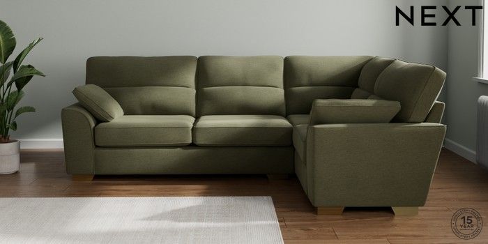 7.2.10 Buy Stamford Highback Large Corner Sofa - Right Hand Ripple Chenille Mid Moss Green Large Square Angle - Brushed Brass from the Next UK online shop Click here to use our accessible website