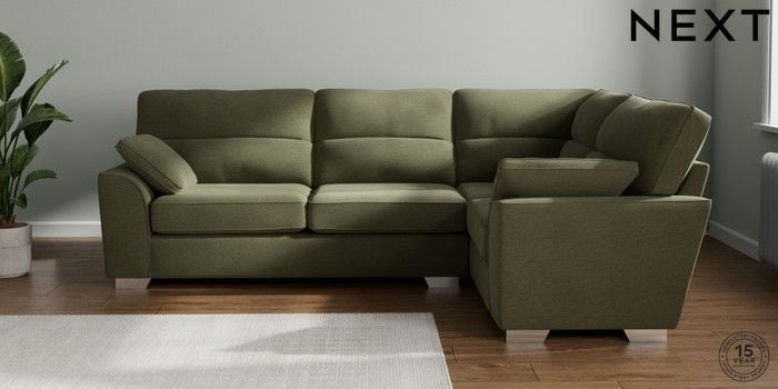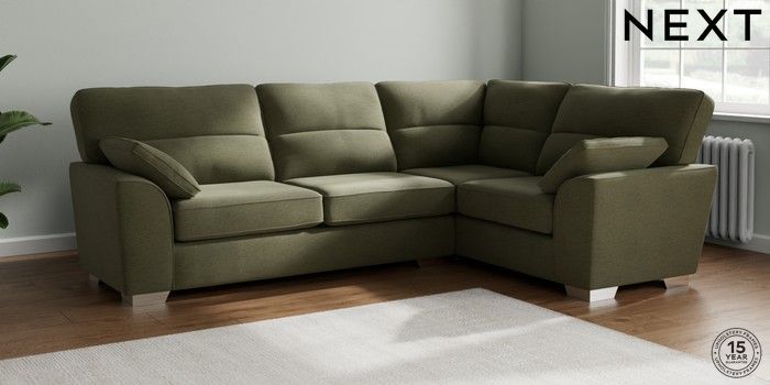 7.2.10 Buy Stamford Highback Large Corner Sofa - Right Hand Ripple Chenille Mid Moss Green Large Square Angle - Chrome Metal from the Next UK online shop Click here to use our accessible website