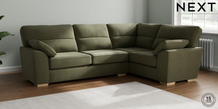 7.2.10 Buy Stamford Highback Large Corner Sofa - Right Hand Ripple Chenille Mid Moss Green Large Square Angle - Light from the Next UK online shop Click here to use our accessible website