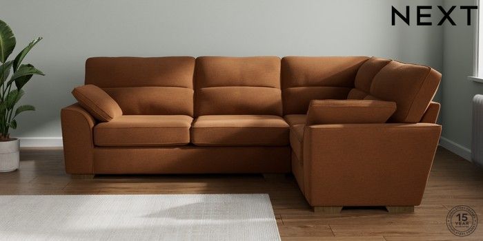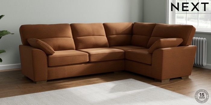 7.2.10 Buy Stamford Highback Large Corner Sofa - Right Hand Ripple Chenille Mid Rust Brown Large Square Angle - Mid from the Next UK online shop Click here to use our accessible website