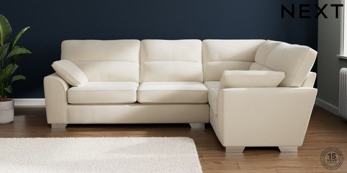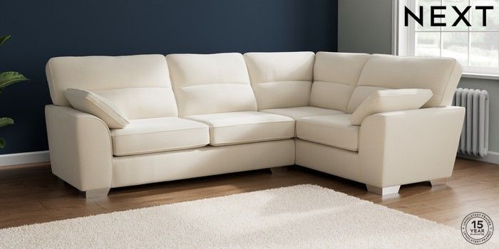 7.2.10 Buy Stamford Highback Large Corner Sofa - Right Hand Ripple Chenille Oyster Large Square Angle - Chrome Metal from the Next UK online shop Click here to use our accessible website
