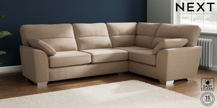 6.12.1 Buy Stamford Highback Large Corner Sofa - Right Hand Tweedy Blend Easy Clean Light Dove Natural Large Square Angle - Chrome Metal from the Next UK online shop Click here to use our accessible website