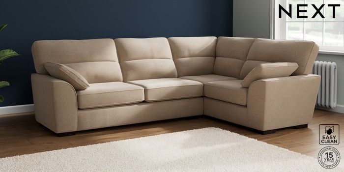 7.2.6 Buy Stamford Highback Large Corner Sofa - Right Hand Tweedy Blend Easy Clean Light Dove Natural Large Square Angle - Dark from the Next UK online shop Click here to use our accessible website