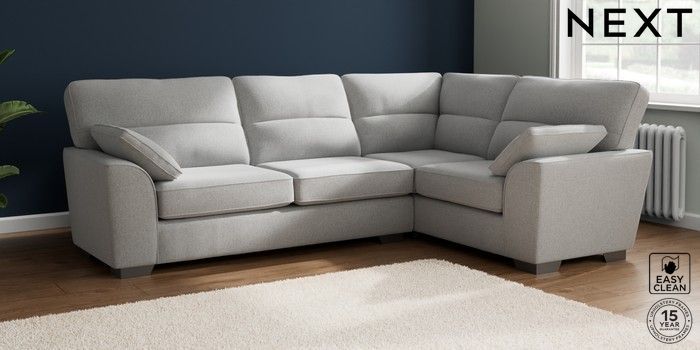 7.2.6 Buy Stamford Highback Large Corner Sofa - Right Hand Tweedy Blend Easy Clean Light Silver Grey Large Square Angle - Gunmetal from the Next UK online shop Click here to use our accessible website