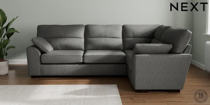 7.2.10 Buy Stamford Highback Large Corner Sofa - Right Hand Tweedy Chenille Dark Grey Large Square Angle - Dark from the Next UK online shop Click here to use our accessible website