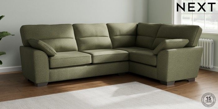 7.3.1 Buy Stamford Highback Large Corner Sofa - Right Hand Tweedy Chenille Mid Moss Green Large Square Angle - Gunmetal from the Next UK online shop Click here to use our accessible website