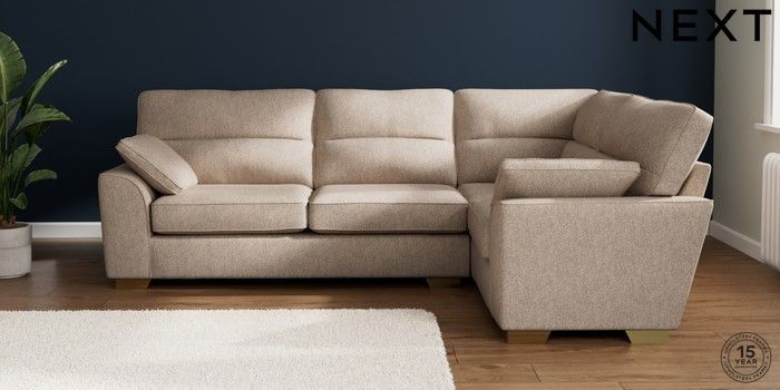 7.2.10 Buy Stamford Highback Large Corner Sofa - Right Hand Tweedy Chenille Mid Natural Large Square Angle - Brushed Brass from the Next UK online shop Click here to use our accessible website