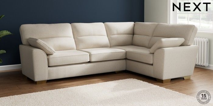 7.2.10 Buy Stamford Highback Large Corner Sofa - Right Hand Tweedy Chenille Oyster Large Square Angle - Brushed Brass from the Next UK online shop Click here to use our accessible website